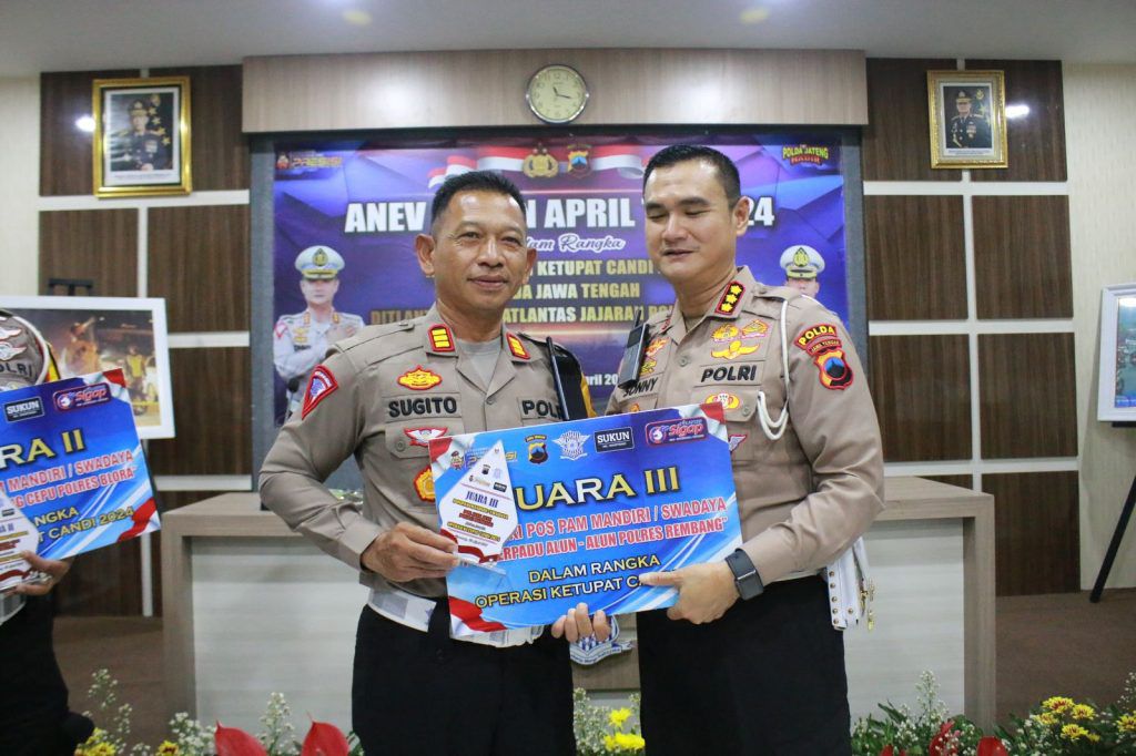 Rembang – Maspolin.id|| Jajaran Satuan Lalu Lintas (Satlantas) Polres Rembang Polda Jateng diganjar penghargaan dari Polda Jateng sebagai juara 3 Kategori Pospam Mandiri/Swadaya dalam rangka Ops Ketupat Candi 2024 tingkat Polda Jateng.