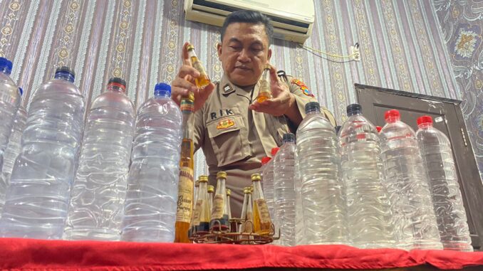 Kasi Humas Polresta Mojokerto Iptu MK Umam, mengatakan, saat kabur, pelaku diduga hendak menghilangkan barang bukti. Di antara semak belukar pekarangan belakang rumah itu, polisi menemukan tujuh botol miras jenis arak Jawa. Seperti, miras asal Blora, Jateng yang dikemas dalam botol ukuran 1,5 liter dan disimpan dalam karung. ’’Arak Blora itu didapat dengan cara titip temannya. Karena dia juga kernet truk antarkota,’’ tegasnya.