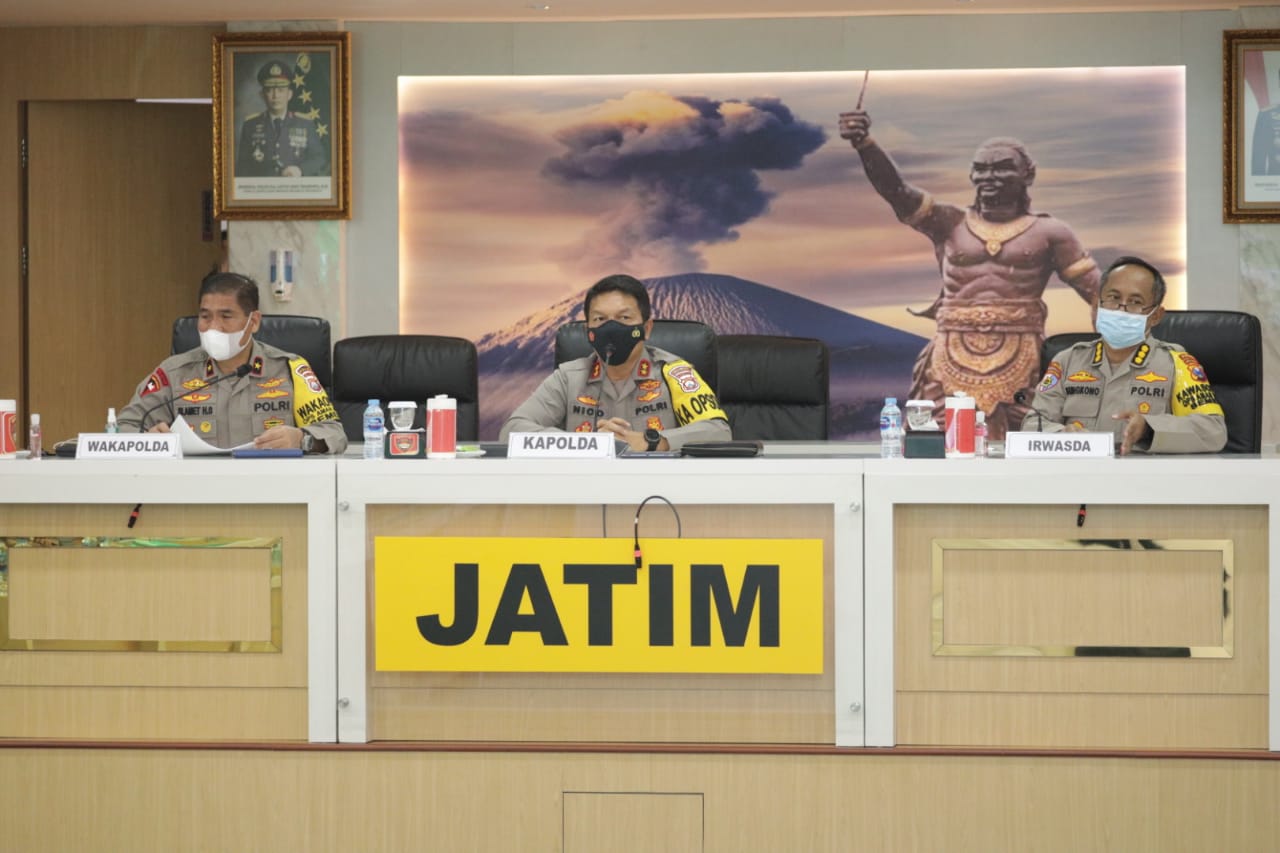 MASPOLIN || SURABAYA – Kapolda Jatim Irjen Pol Dr. Nico Afinta Jumat (5/2/21) memberikan arahan kepada Pejabat Utama Polda Jatim dan Kapolres Jajaran secara Daring (online) bertempat di rupatama Polda Jatim dalam rangka menindaklanjuti hasil anev pemberlakuan PPKM di Jatim yang telah dilaksanakan oleh Forkopimda Jatim pada hari sebelumnya Kamis (4/2/21) di ruang rapat Kodam V / Brawijaya.