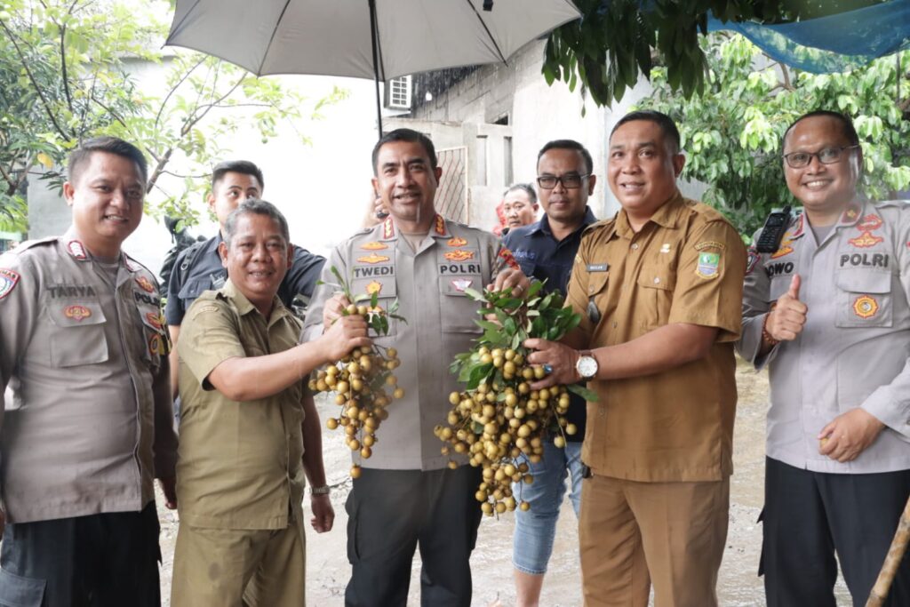 Bekasi – Maspolin.id|| Kapolres Metro Bekasi Kombes Pol Twedi Aditya Bennyahdi memanen buah Kelengkeng bersama warga, Desa Pair Gombong , Cikarang, Kabupaten Bekasi, Selasa (14/3/2023).