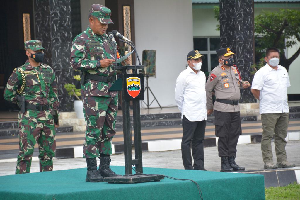 Medan—Maspolin.id // Panglima Komando Daerah Militer I Bukit Barisan Mayjen TNI Hassanudin SIP, MM, memimpin Apel Gelar Pasukan dalam rangka Pengamanan VVIP kunjungan kerja Wakil Presiden RI KH. Ma’aruf Amin ke Wilayah Kota Medan, di Lapangan Hijau Makodam I/BB, Senin (15/11/2021).
