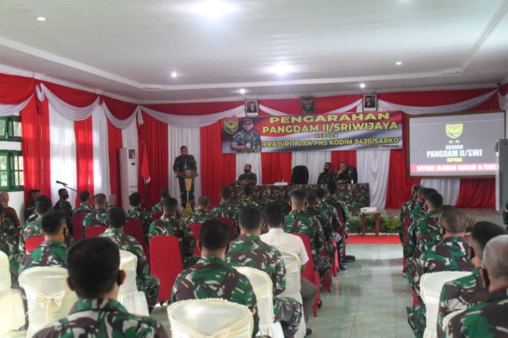 Demikian disampaikan oleh Pangdam II/Swj Mayjen TNI Irwan,S.IP, M.Hum saat memberikan pengarahan kepada Prajurit dan PNS Kodim 0420/Sarko dalam kunjungan kerjanya.