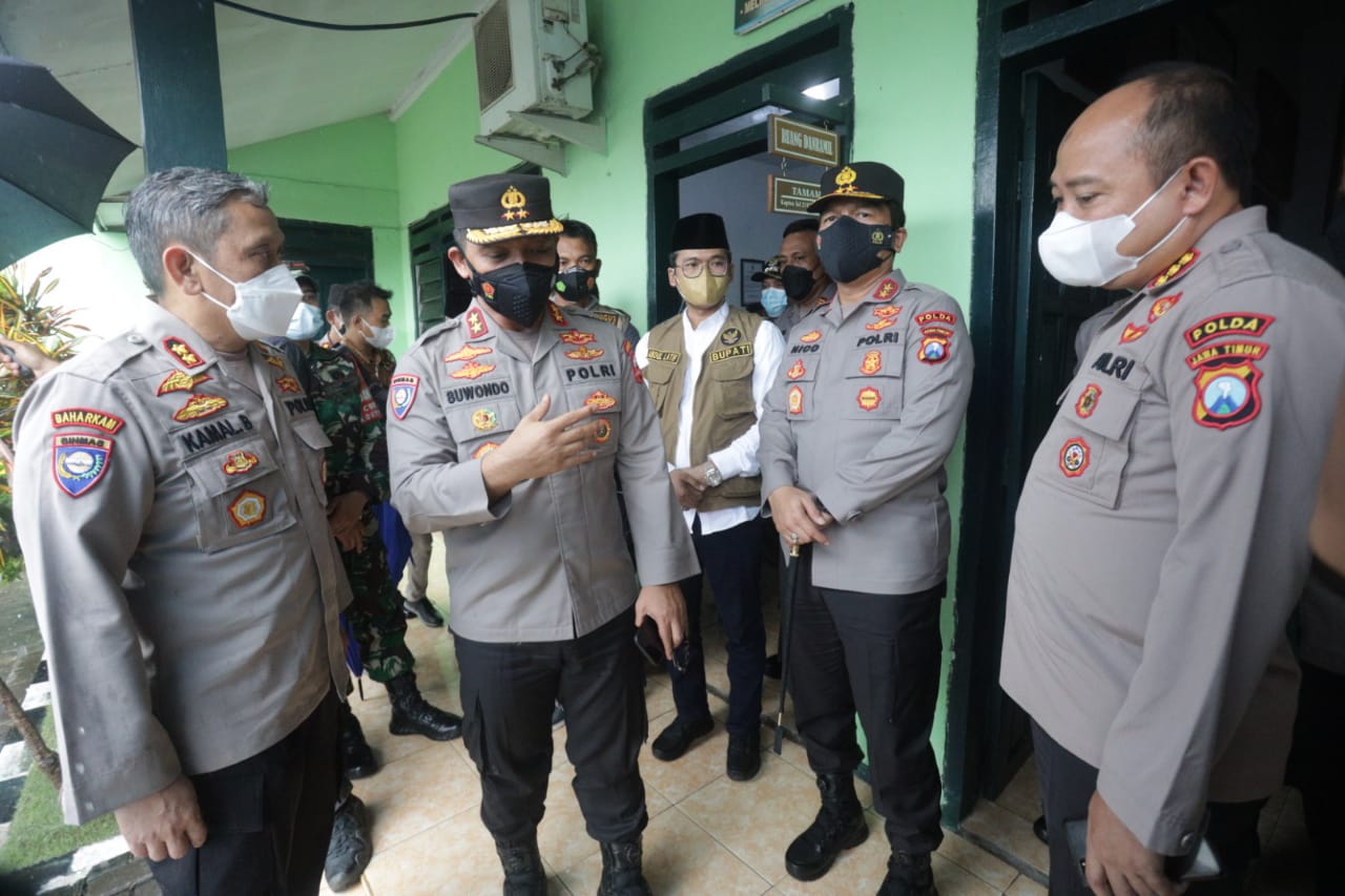 MASPOLIN || BANGKALAN,- Pangdam V Brawijaya Mayjen TNI Suharyanto, Kapolda Jawa Timur Irjen Pol Nico Afinta bersama Kakor Binmas Polri Irjen Pol Suwondo Nainggolan didampingi Pejabat Utama polda jatim, pejabat utama Kodam V Brawijaya dan Forkopimda Kabupaten Bangkalan, Madura. Jumat (11/6/2021) siang, mengunjungi Koramil 0829/13 dan Polsek Arosbaya.