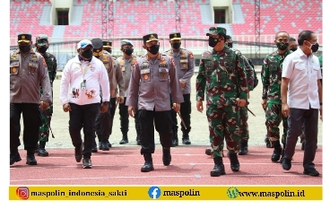 MASPOLIN || JAKARTA – Panglima TNI Marsekal Hadi Tjahjanto, Kapolri Jenderal Listyo Sigit Prabowo dan Menpora Zainudin Amali, meninjau langsung kesiapan Stadion Lukas Enembe dan arena akuatik, menjelang pelaksanaan PON ke-XX.
