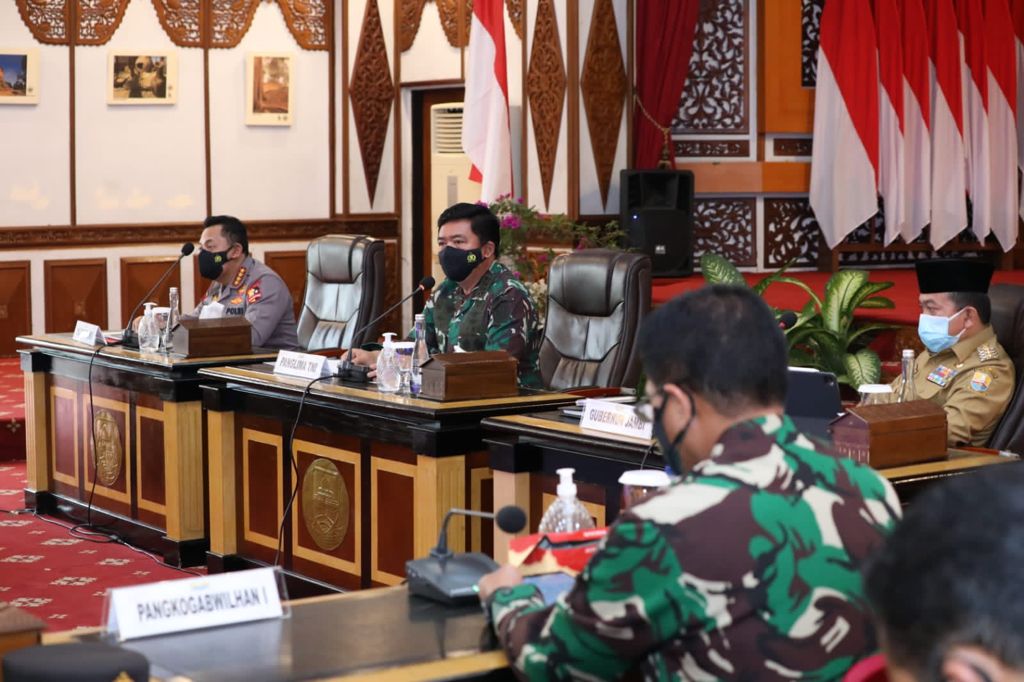 “Saat ini Provinsi Jambi mengalami perbaikan dalam penanganan pandemi yang ditandai dengan tren penurunan kasus konfirmasi, perawatan dan kematian. Namun kita perlu terus mencermati perkembangan data real dan fakta-fakta di lapangan,” kata Panglima TNI.