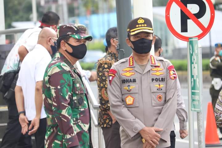 MASPOLIN || JAKARTA – TNI – Dalam rangka menyongsong kehidupan baru (new normal) di tengah pandemi Virus Corona atau Covid-19, Tentara Nasional Indonesia (TNI) dan Kepolisan Negara Republik Indonesia (Polri) akan menggelar pendisiplinan protokol kesehatan di 1.800 titik yang berada di 4 (empat) Provinsi dan 25 Kabupaten/Kota.
