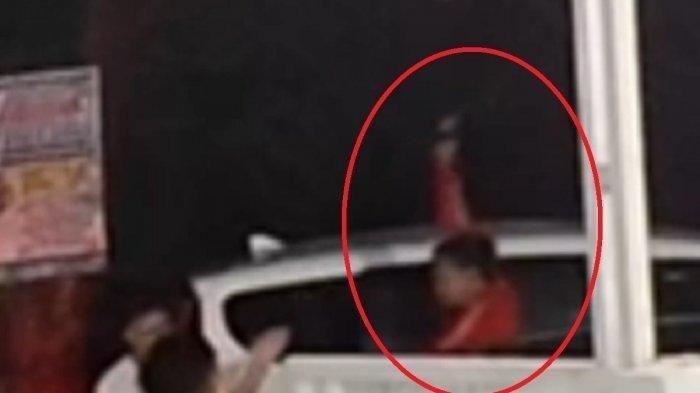 Tampak Bripka AG berjaket merah terpaksa mengeluarkan tembakan peringatan setelah terdesak oleh adangan warga Waru Sidoarjo.