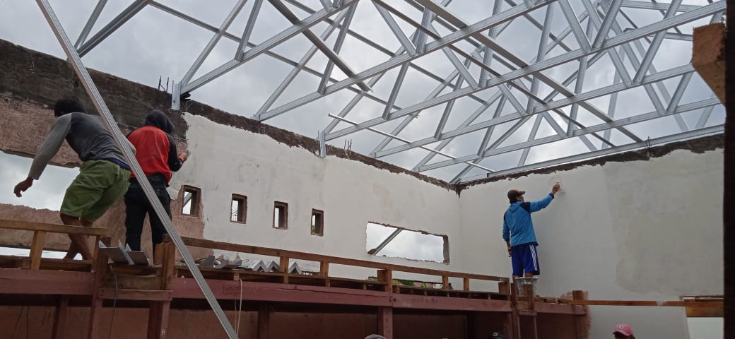 Bangunan asrama santri yang rusak kini mulai di renovasi mulai dari bagian atap, pengecatan dinding dan pemasangan lantai.
