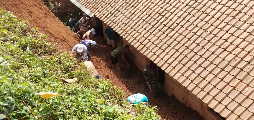 Sebagai langkah penanganan bencana, Babinsa Koptu Sukiman memotori warga setempat untuk melakukan upaya pembersihan material longsor agar tidak membahayakan bagi penghuni rumah.