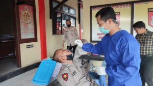 Kapolres Blora AKBP Aan Hardiansyah,SH,MH melalui Kasi Dokkes dr. Kusumaningrum mengatakan tes ini dilakukan sebagai langkah antisipasi karena pandemi Covid-19 belum usai.