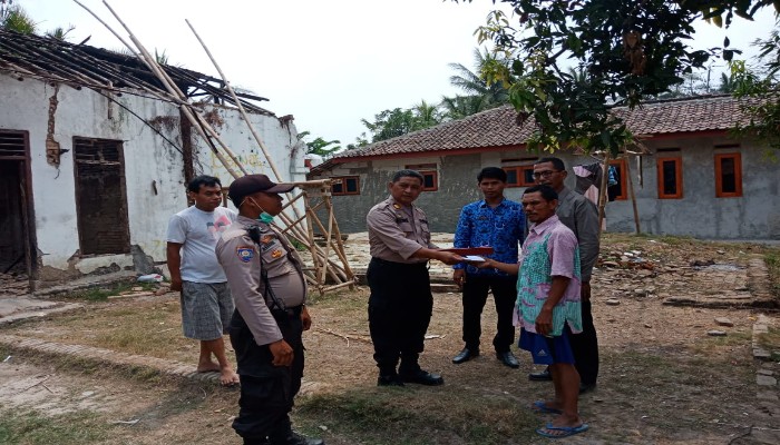 Banten,Maspolin.id – Kabupaten Serang. Jajaran Polsek Cikeusal Polres Serang menyalurkan dana sumbangan atau perbaikan rumah korban bencana alam gempa bumi beberapa waktu yang lalu. Korban bernama Jaenal Abidin alias Jaka Warga Kampung Bojong Neros, RT 02/03, Desa Panosogan, Kecamatan Cikeusal, Kabupaten Serang, Selasa (20/08/2019).