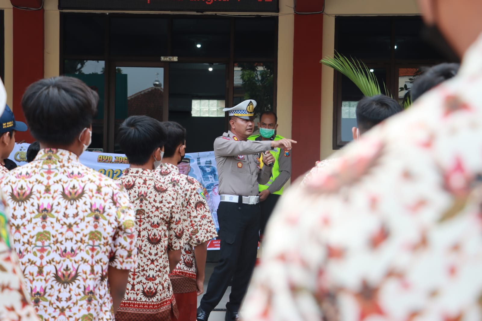 “Sesuai aturan UU LAJ No 22 tahun 2009, dijelaskan bahwa usia 15 tahun belum layak untuk mengendarai kendaraan bermotor, oleh sebab itu saya menghimbau kepada adik-adik semua agar tidak mengendarai kendaraan bermotor ketika berangkat ke sekolah,” Tuturnya.