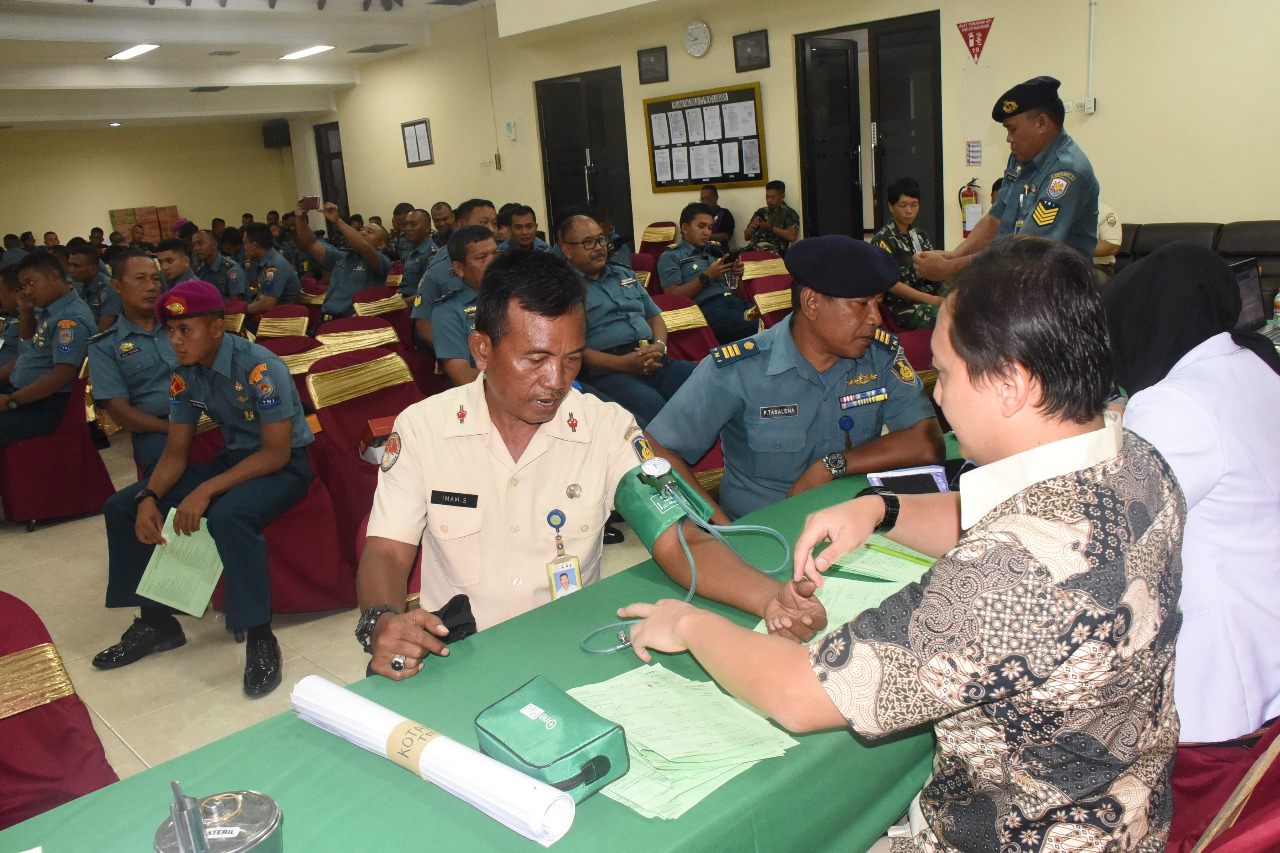 Surabaya,Maspolin.id – Peduli pada sesama, 50 prajurit dan Pegawai Negeri Sipil Akademi Angkatan Laut (AAL) mendonorkan darahnya pada perayaan Natal Gabungan TNI AL Wilayah Surabaya 2019 yang digelar di Lantai 3, Markas Palang Merah Indonesia (PMI) Jl. Embong Ploso No 7-15, Surabaya, Kamis (23/1).