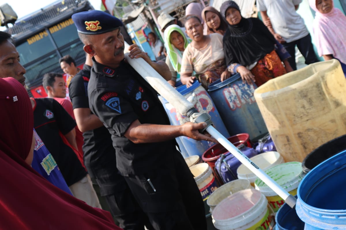 “Merupakan bakti sosial untuk membantu masyarakat yang membutuhkan air bersih. Satuan Brimob Polda Banten memakai 3 AWC untuk mengangkut air bersih tersebut. Semoga dapat bermanfaat dan terasa bantuan kami untuk masyarakat,” kata Kombes Pol Reeza Herasbudi.