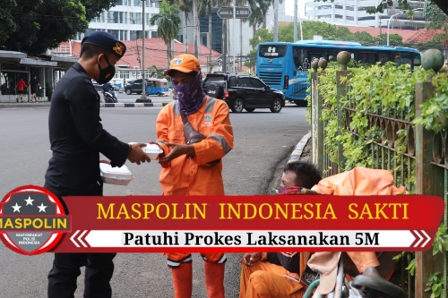 MASPOLIN || Gambir (Jakarta Pusat) — Kegiatan sosial pemberian bantuan makanan kepada pekerja kebersihan dan masyarakat yang dilaksanakan personel Resimen 1 Pasukan Pelopor, bertempat di sekitaran area Monas, Stasiun Gambir dan Jalan Harmoni, Senin (15/02/2021) sore.