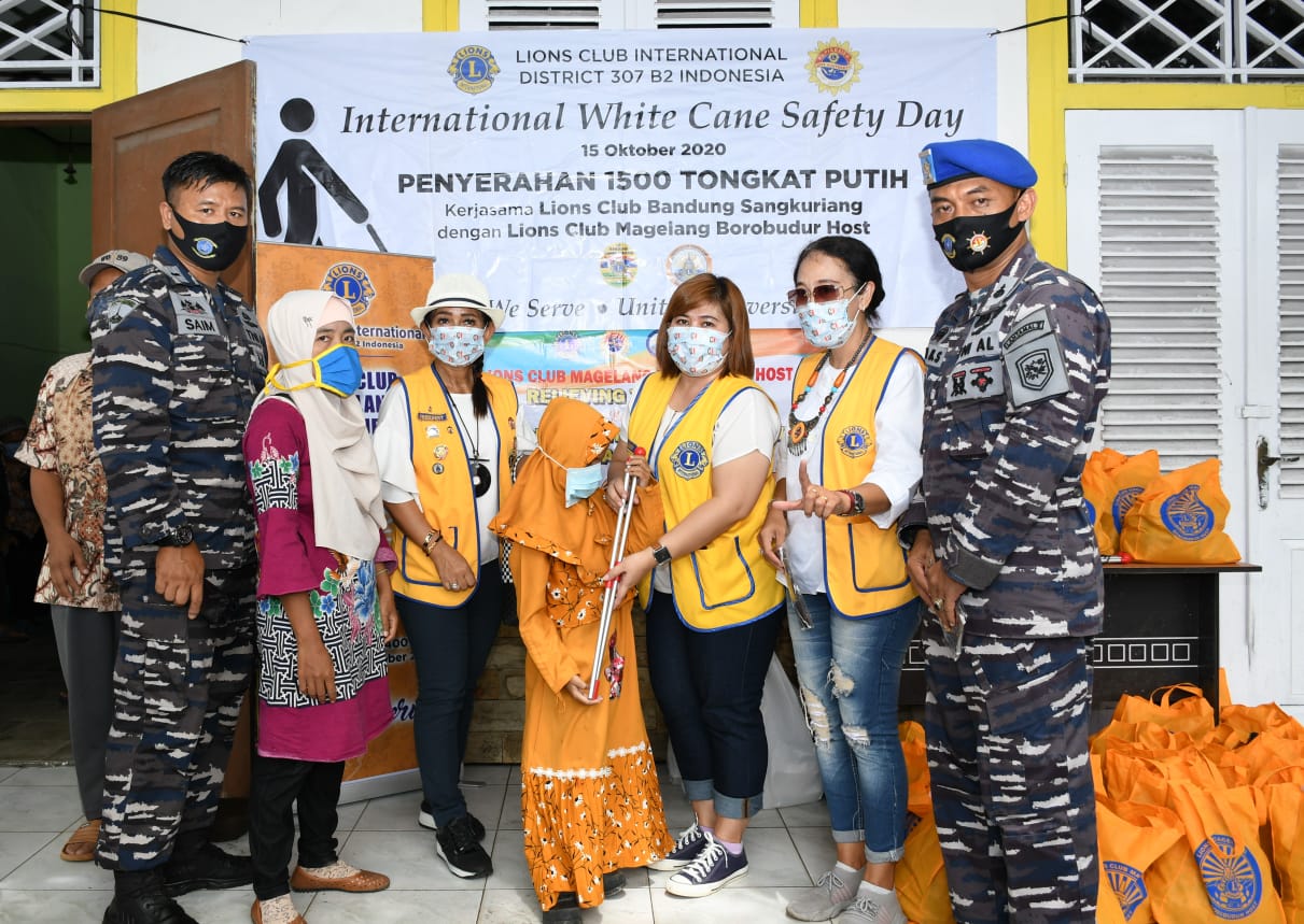 MASPOLIN || CILACAP – Pangkalan TNI Angkatan Laut (Lanal) Cilacap bekerjasama dengan Lions Club Magelang Borobudur Host, mengelar Bakti Sosial (Baksos) pembagian Tongkat putih, Sembako, Nasi Kotak, Masker, Hand Sanitizer, serta Rapid Test kepada penyandang Tuna Netra. Rabu (21/10).