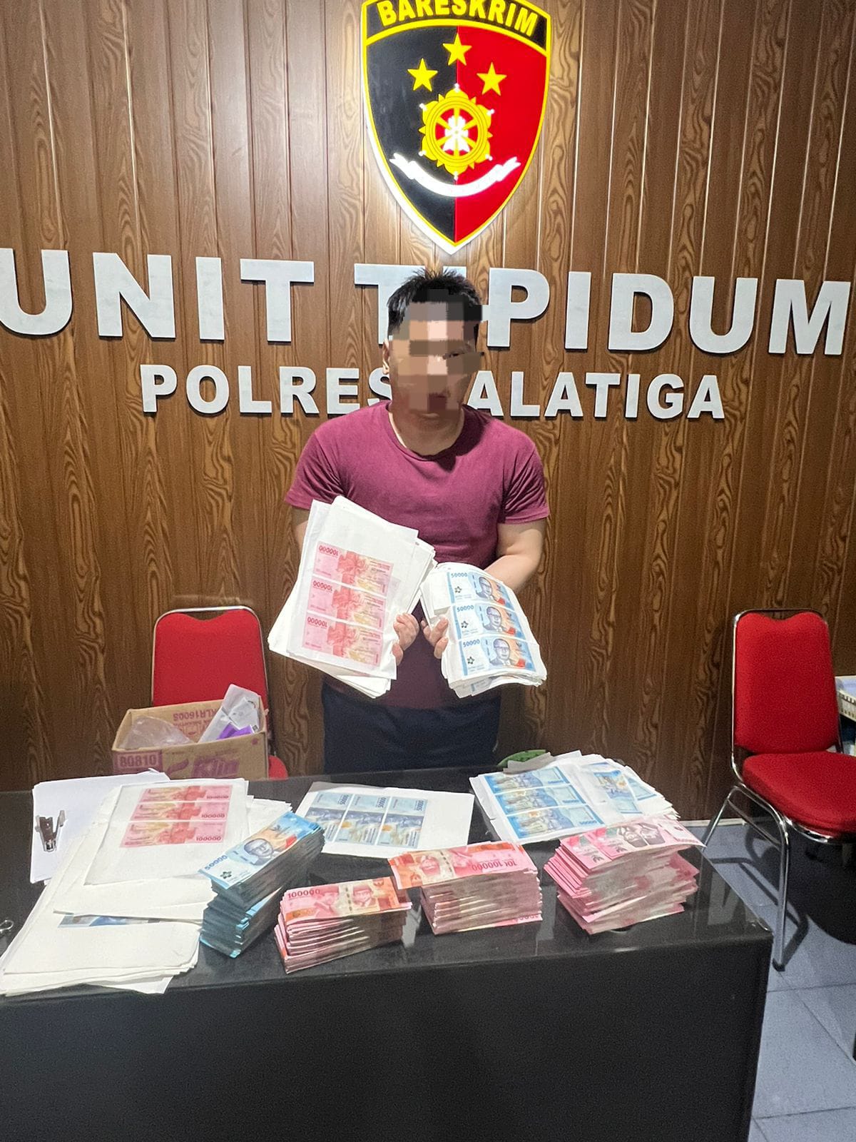 Salatiga – Maspolin.id|| AS Bin (Alm) BS, seorang lelaki berusia 37 Tahun, kelahiran Medan yang merupakan warga Jakarta Barat harus meringkuk di sel tahanan Polres Salatiga setelah berhasil diamankan tim Resmob Satreskrim Polres Salatiga sesaat setelah mengirimkan uang palsu (Upal) melalui jasa pengiriman paket kilat.