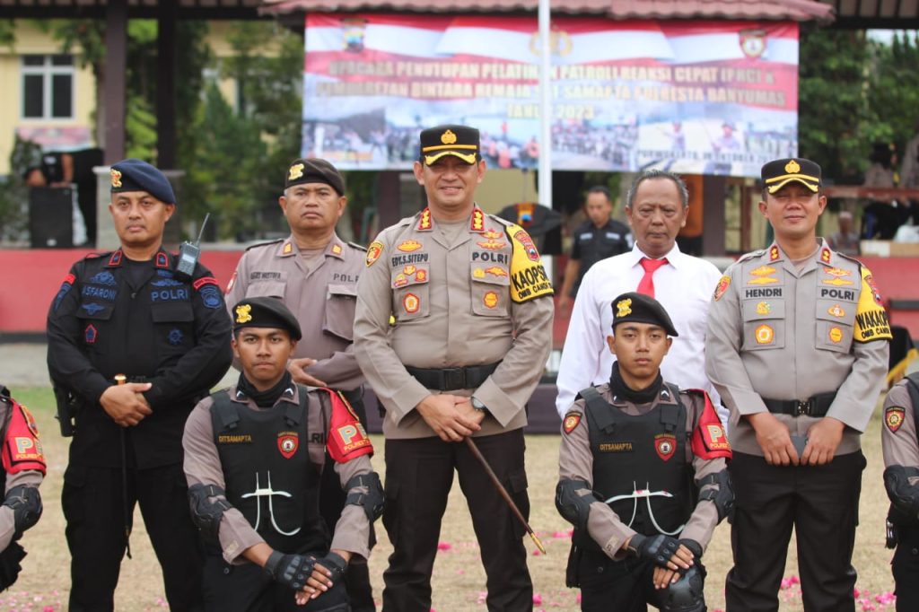 Banyumas – Maspolin.id|| Kapolresta Banyumas Kombes Pol Edy Suranta Sitepu, SIK, MH, menutup kegiatan Latihan Tim Patroli Reaksi Cepat (PRC) dan Pembaretan Bintara Remaja Sat Samapta Polresta Banyumas Tahun 2023, Senin (23/10/23).