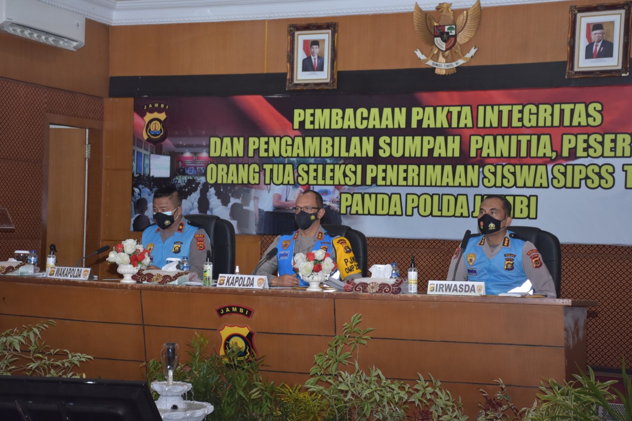 Kapolda Jambi dalam amanatnya mengatakan bahwa kegiatan ini adalah untuk menegakkan komitmen bersama antara panitia, orang tua dan peserta seleksi SIPSS, bahwa pelaksanaan proses seleksi akan dilaksanakan dengan prinsip BETAH (Bersih, Transparan, Akuntabel dan Humanis) serta clean dan clear.