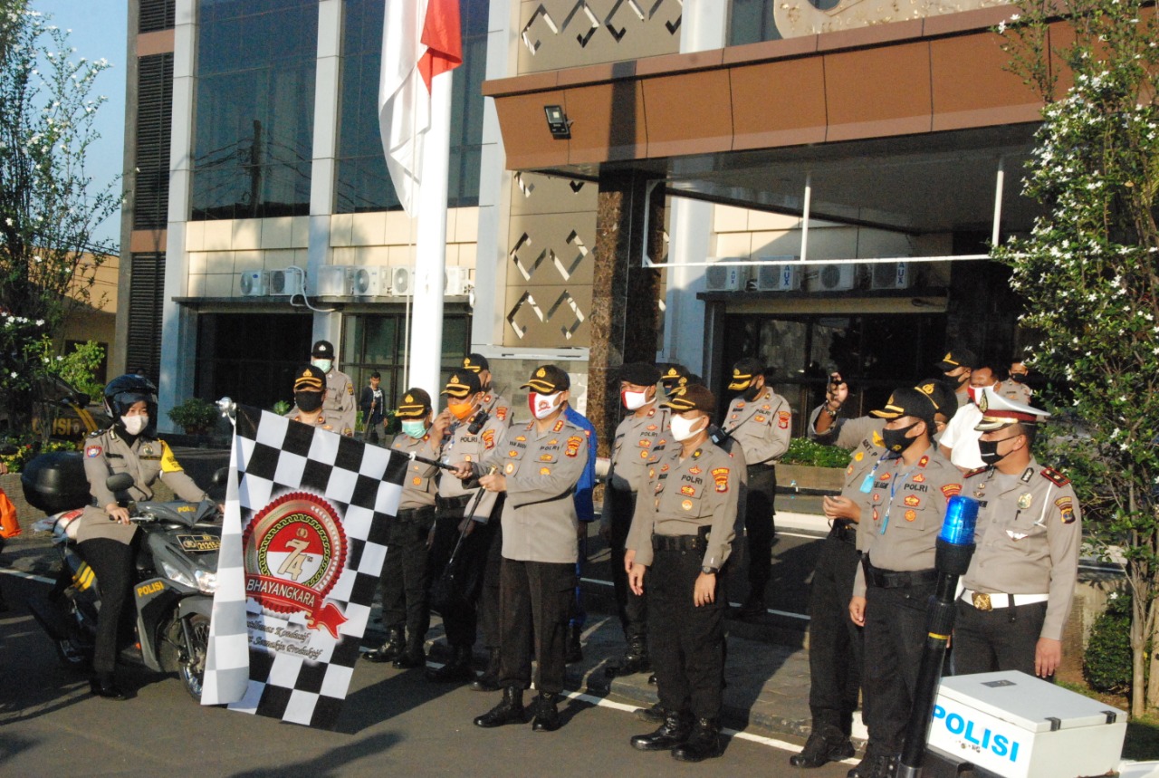 MASPOLIN || Kota Bandar Lampung (Lampung) — Dalam rangka rangkaian Hari Bhayangkara ke 74 tahun 2020, Polresta Bandar Lampung dan jajaran menggelar bakti sosial dengan membagikan paket sembako kepada masyarakat Kota Bandar Lampung.