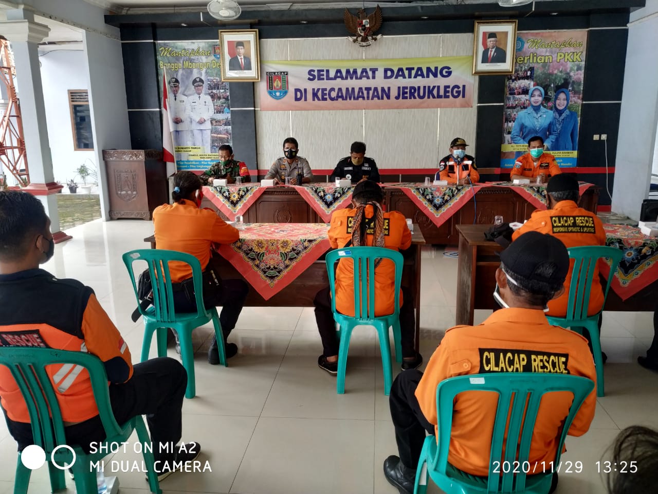 Maspolin.id, Cilacap – Danramil 02 Jeruklegi Kapten Inf Taryun menghadiri Rapat Koordinasi (Rakor) dan Pembinaan kepada Tim SAR Cilacap Rescue Kabupaten Cilacap yang diselenggarakan Pemerintah Kecamatan Jeruklegi bertempat di Pendopo Kecamatan Jeruklegi, Minggu (29/11/2020).