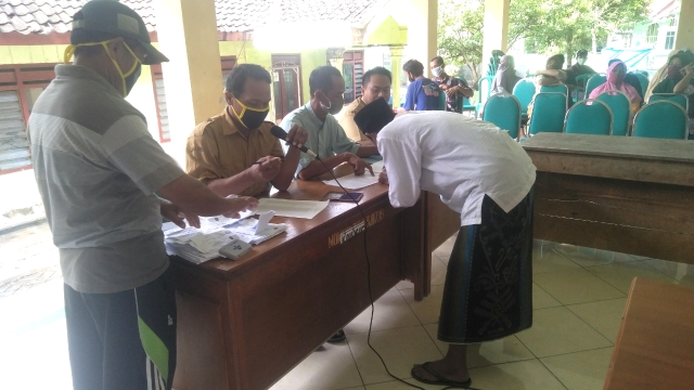 MASPOLIN || TUBAN – Pemerintah Desa (Pemdes) Sokosari, Kecamatan Soko, Kabupaten Tuban, membagikan Bantuan Lansung Tunai (BLT) Dana Desa (DD) tahap kedua kepada kurang lebih 178 Kepala Keluarga (KK) yang dilaksanakan di Kantor Desa setempat, Senin (22/6/2020) sekira pukul 10.00 wib.