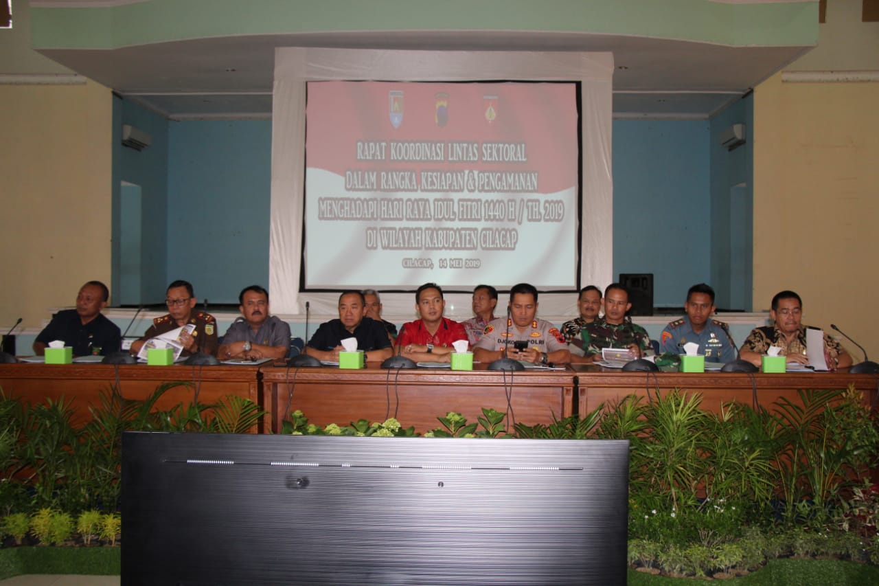Sementara, Kapolres Cilacap memaparkan kesiapan pengamanan Idul Fitri 1440 H dengan melaksanakan cipta kondisi untuk mewujudkan kamtibmas dengan mengantisipasi berbagai ancaman, diantaranya tindak terorisme, sabotase, sweeping ormas, perkelahian antar warga, pencurian toko maupun ATM, penyimpangan BBM, melonjaknya harga sembako, penyalahgunaan narkoba dan minuman keras, serta meminimalisir kecelakaan lalulintas.