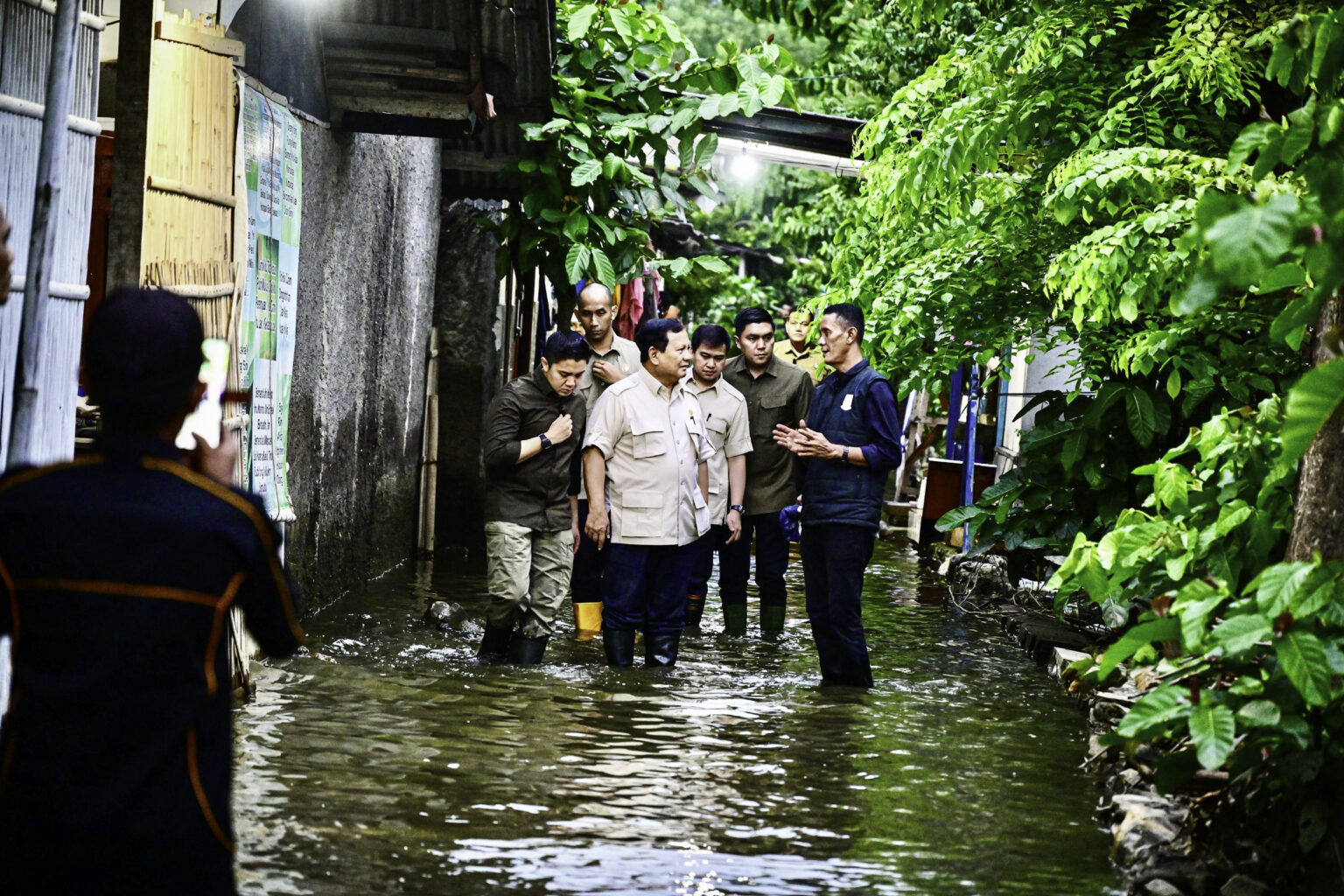 Saat tiba, Presiden Prabowo langsung menyusuri pemukiman yang masih tergenang air. Kepala Negara juga menyempatkan diri berbincang dengan warga yang terdampak banjir, menanyakan kondisi mereka serta kebutuhan mendesak yang diperlukan.