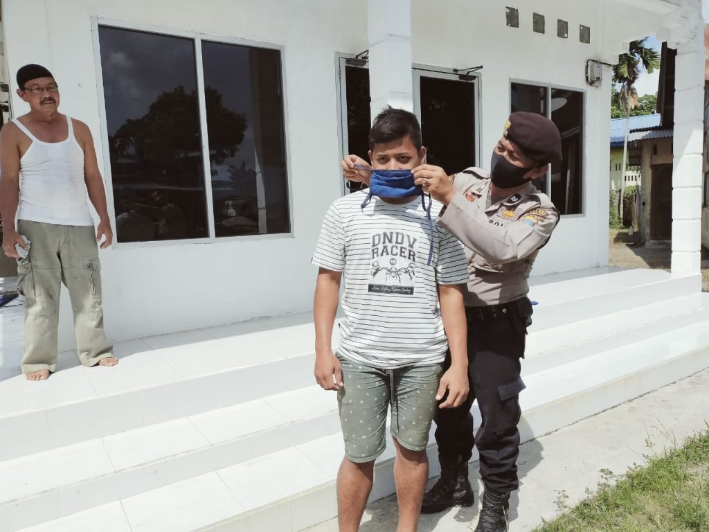 Kapolsek Indrapura AKP. Sandi.SH. Langsung memberikan Masker kepada masyarakat serta langsung memakaikan Masker tersebut, Kapolsek Indrapura, AKP.Sandi.SH. berharap agar seluruh Masyarakat tetap disiplin untuk menuju Tatanan PASE NEW NORMAL.