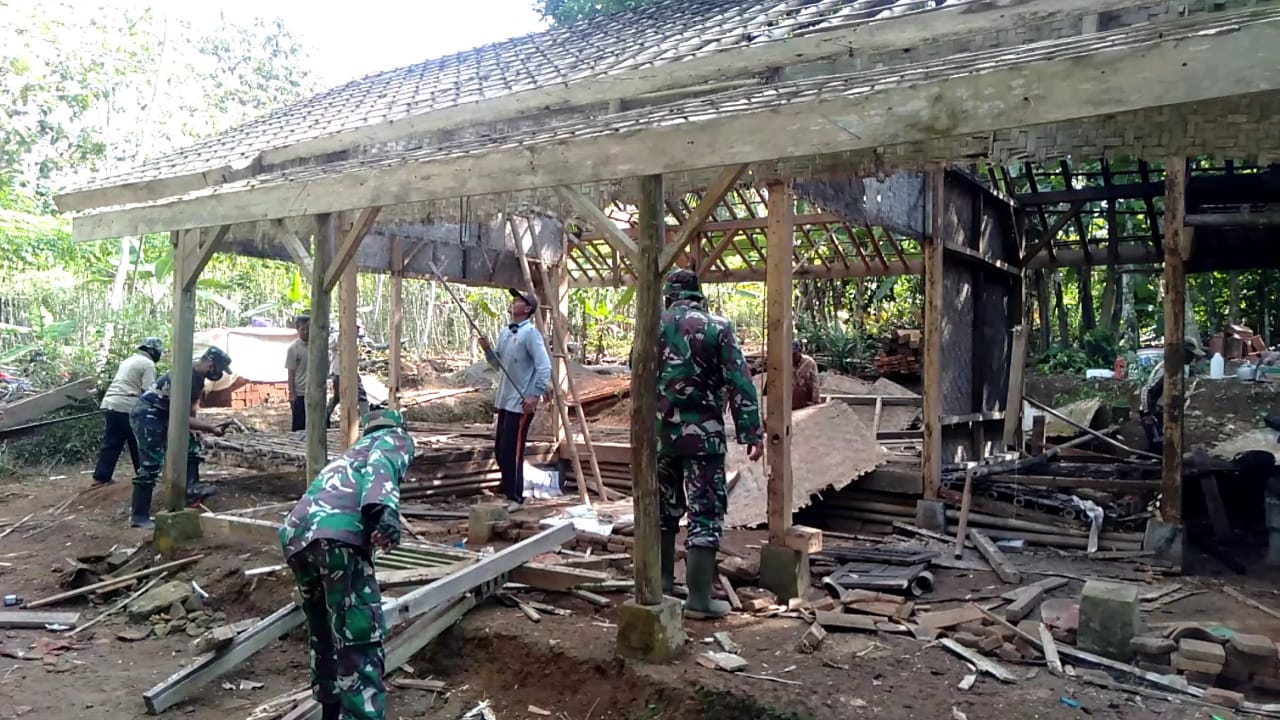 Dalam kegiatan tersebut, warga bersama TNI dan pemilik rumah berjibaku untuk membongkarnya. Genteng atap rumah di turunkan untuk direhab termasuk juga dinding dinding rumah yang terbuat dari anyaman bambu. Sedangkan kayu yang dipergunakan untuk tiang untuk sementara tidak dibongkar, hal ini agar kerangka rumah tetap bisa berdiri.