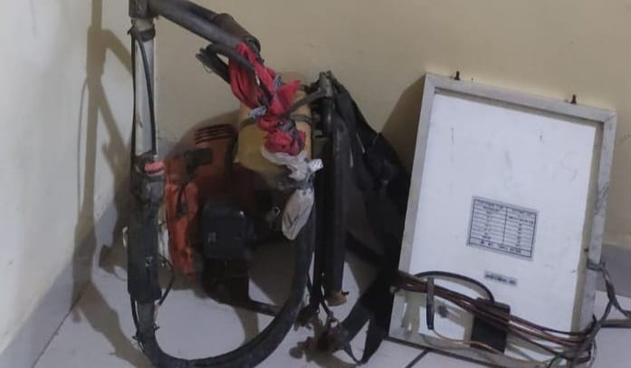 Sambungnya, dari tangan tersangka turut diamankan barang bukti 1 unit panel tenaga surya, accu warna putih merk yuasa dan mesin potong rumput merek stihl.