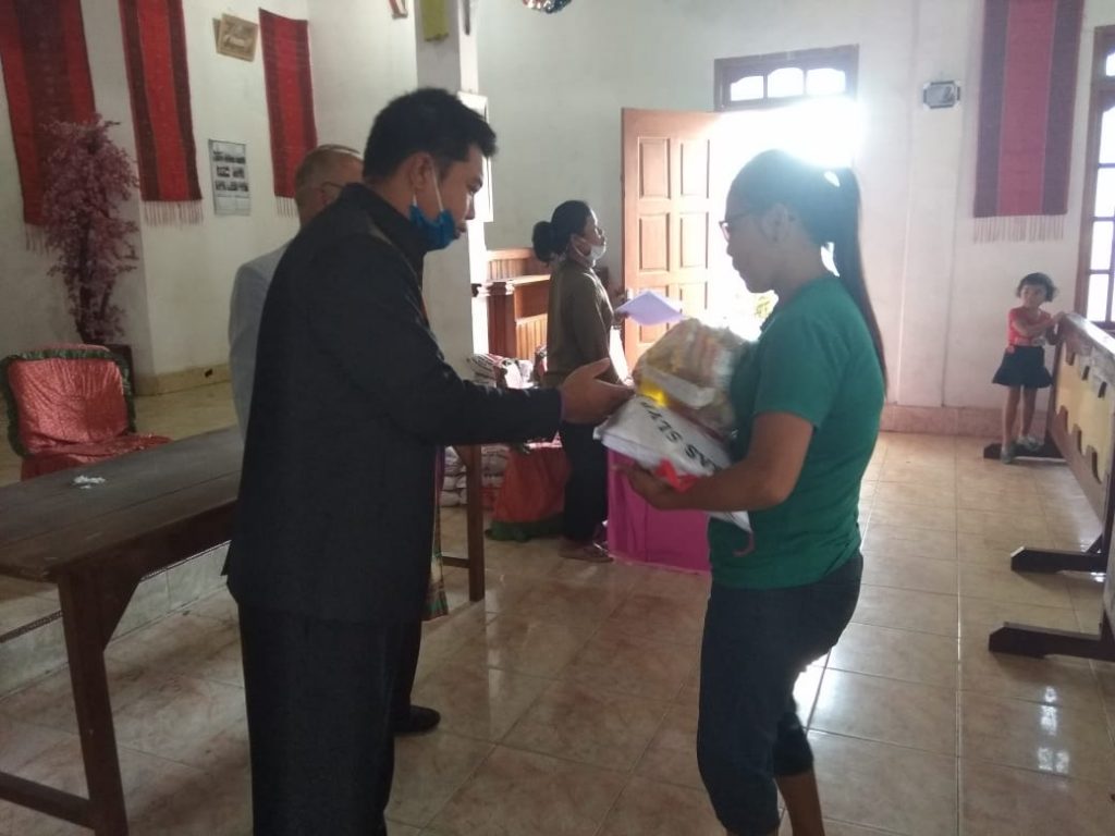 Melalui Pendeta Distrik V Humbang – Tapteng Gereja Punguan Kristen Batak (GPKB ) Pdt Yoseph Hutabarat, M.Th Berserta Ibu Dety Lidya Sitorus Pane, Am.Keb. Menyerahkan Batuan Dari Lutheran World Federation ( LWF ) Yang Didamping Pengurus Gereja Punguan Kristen Batak ( GPKB ) Resort Siborongborong Kota Pukul 10:15 wib 09 – Mei – 2020 Sampai Dengan Selesai.