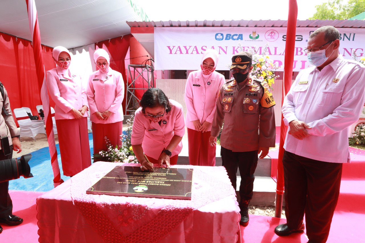 maspolin.id, Bangkalan – Dalam rangka peringatan hari ulang tahun Yayasan Kemala Bhayangkari (YKB) yang ke 42, Ketua Pengurus Yayasan Kemala Bhayangkari Daerah Jawa Timur Ny.Ully Nico Afinta didampingi Kapolres Bangkalan dan Pejabat Utama Polres Bangkalan, Rabu (30/3/2022) melakukan peresmian pembangunan MCK di RT 03 Kelurahan Tonjung, Bangkalan dengan jumlah penduduk sebanyak 70 Kepala Keluarga.