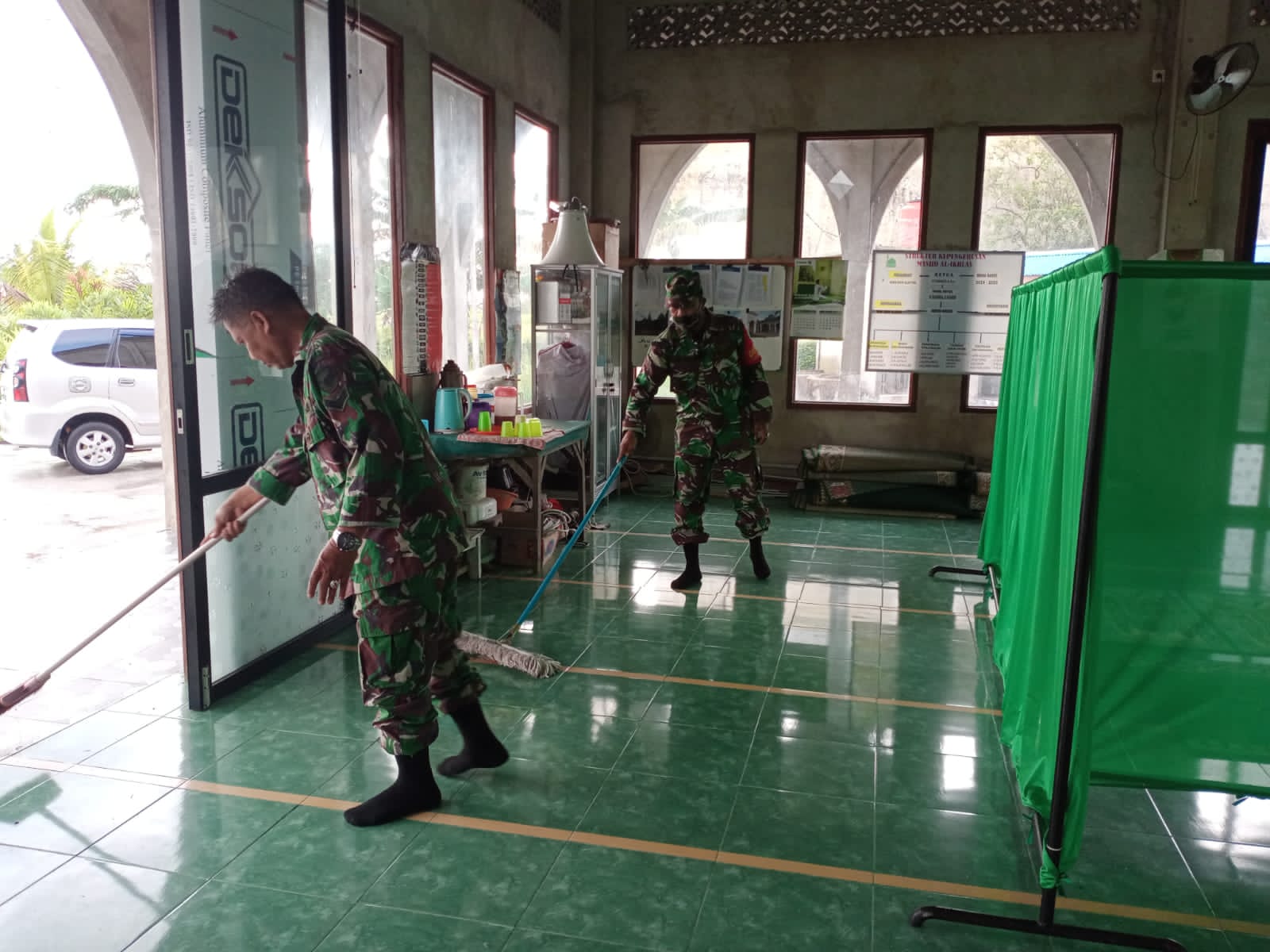 “Mulai dari membersihkan halaman masjid, sampah-sampah yang berada disekitaran masjid, pengepelan Ruangan, tempat wudhu, kamar mandi dan bagian – bagian yang Lain” ujarnya