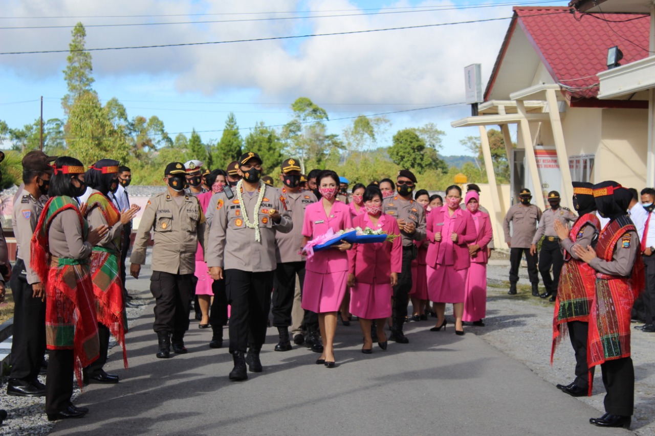 Selanjutnya Personil Polres Humbahas menyambut baik kedatangan Kapolres dengan diriingi Tarian Tortor (Polwan Polres Humbahas).