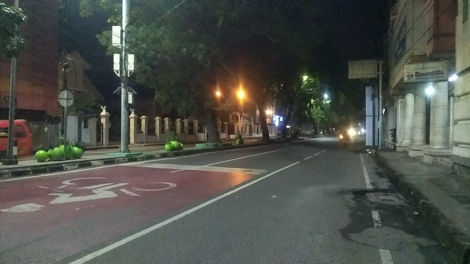 Medan, Maspolin.id—Kondisi ruas jalan di Kota Medan sepi setelah dilakukan penyekatan pada pelaksanaan pemberlakuan pembatasan kegiatan masyarakat (PPKM) Darurat, Senin (12/7) sekira Pukul 22.30 WIB