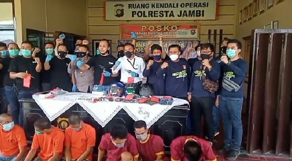 Ketiga tersangka ini berhasil dilumpuhkan Tim Opsnal Tekab Rangkayo Hitam Satreskrim Polresta Jambi ,dan Opsnal Libas Polsek Jelutung di kos kosan belakang SMP 11 kota Jambi dan ketiga pelaku berhasil dilumpuhkan dan digelandang ke Mapolresta Jambi”