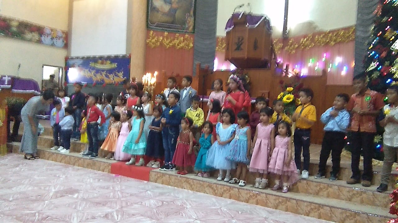 Perayaan natal tersebut dimulai dgn ibadah persiapan diri ( Doa pribadi ) dilanjutkan dengan menyanyikan lagu kidung jemaat (KJ)