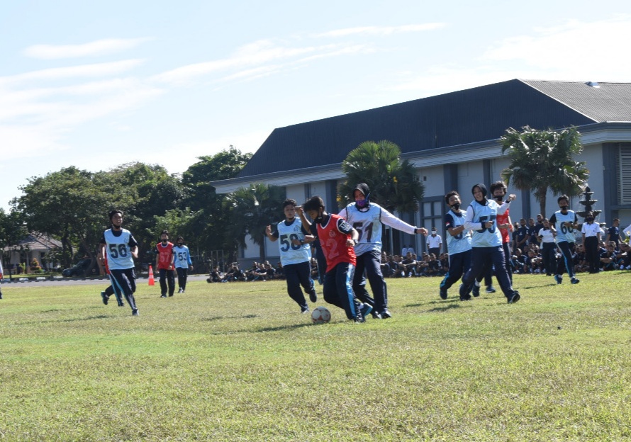 Olahraga bersama semakin meriah dengan digelarnya pertandingan sepak bola mini wanita antara gabungan Taruni tingkat lll, ll, l dan anggota Kowal Pengasuh Batalyon lV.