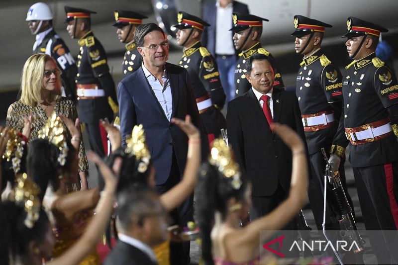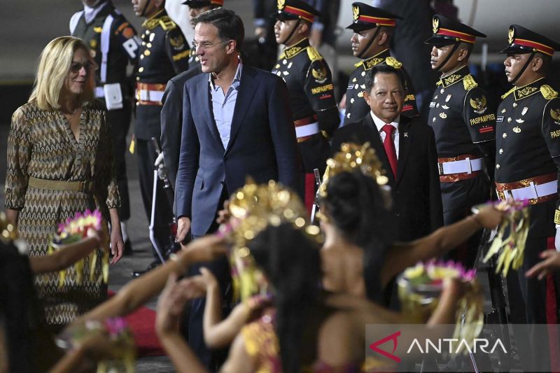 BALI – Maspolin.id|| Perdana Menteri Belanda Mark Rutte (kanan) turun dari pesawat udara setibanya di Bandara I Gusti Ngurah Rai, Bali, Senin (14/11/2022). Perdana Menteri Belanda tiba di Bali untuk menghadiri KTT G20 yang akan berlangsung pada 15-16 November 2022.
