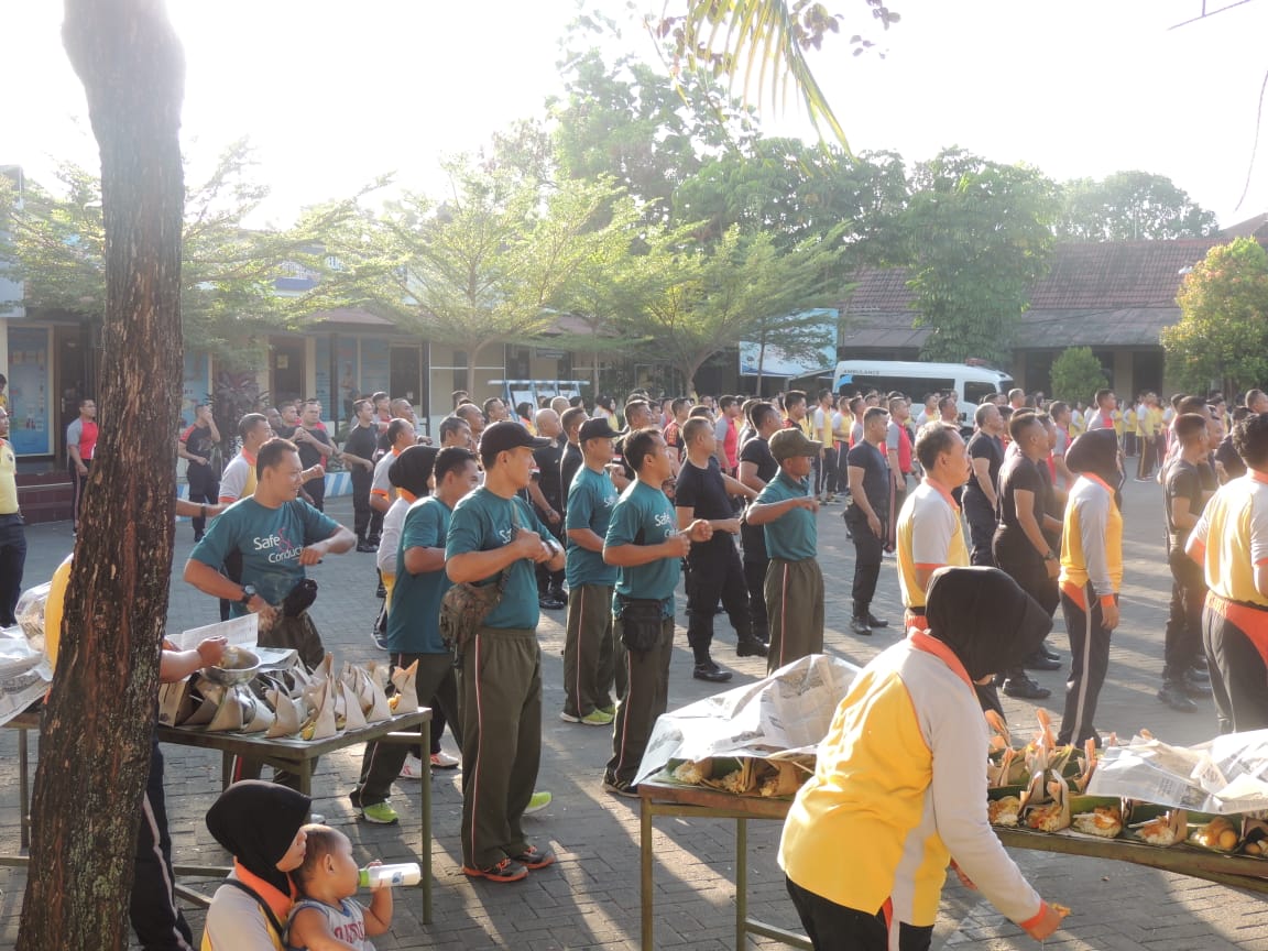 Surakarta,Maspolin.id – Dalam rangka memperingati HUT Bhayangkara ke-73 Anggota Kepolisian dari jajaran Polresta Surakarta bersama dengan Prajurit TNI dari Kodim 0735/Surakarta menggelar olahraga bersama, bertempat di Lapangan Mako II Polresta Surakarta Jln.Brigjen Slamet Riyadi, No.376, Kelurahan Purwosari, Kecamatan Laweyan, Jum’at (14-6-2019).