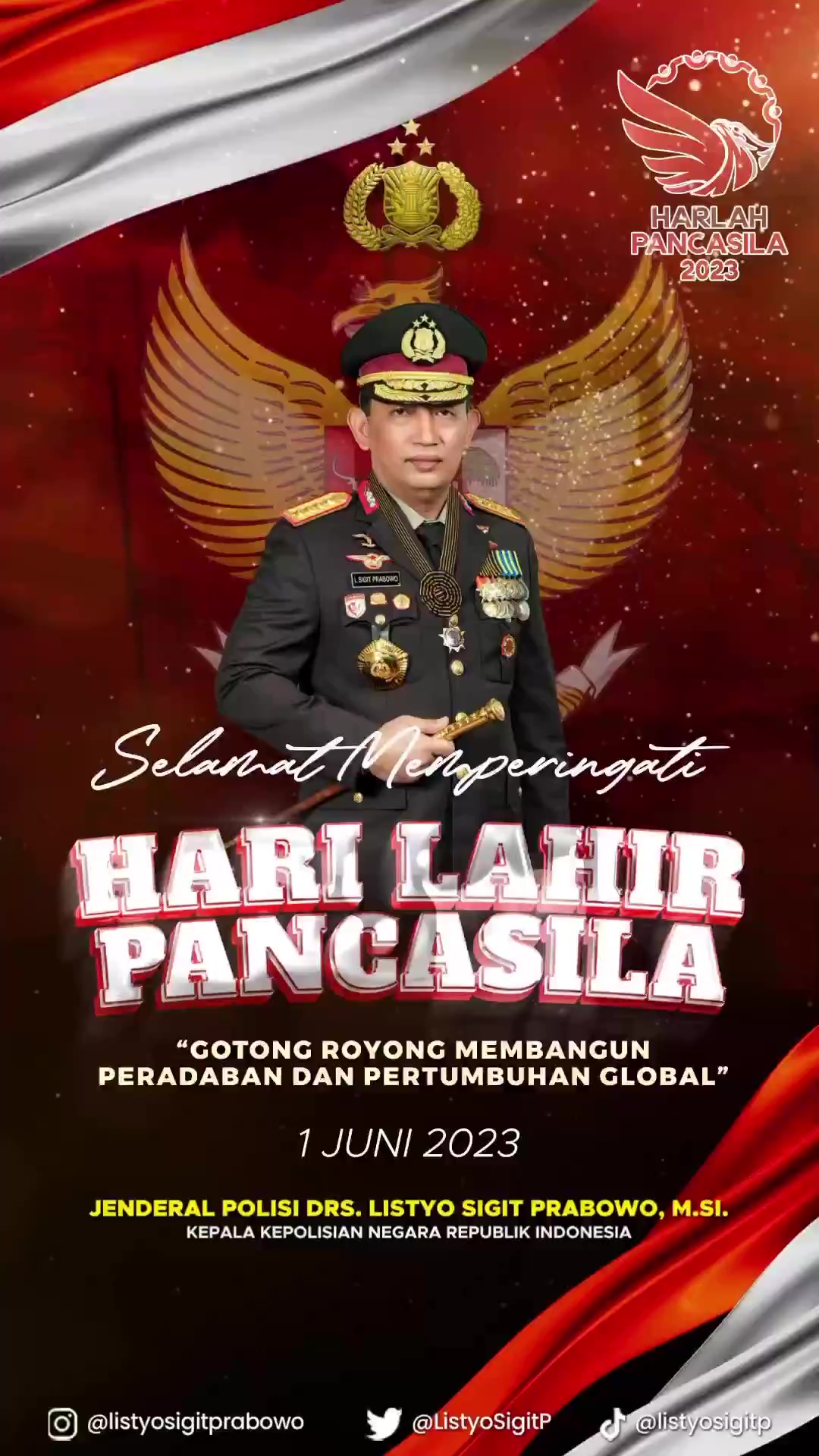 “Selamat memperingati hari lahir Pancasila. semoga dengan semangat gotong royong, Indonesia mampu membangun peradaban, dan pertumbuhan global disegala bidang menuju Indonesia maju,” kata Kapolri melalui unggahan instagram resminya, @listyosigitprabowo, seperti dikutip Kamis (1/6/2023).