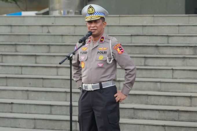 JAKARTA – Maspolin.id|| Dirregident Korlantas Polri Brigjen Pol Yusri Yunus memimpin apel pagi di Lapangan Gedung NTMC Korlantas Polri, Cawang, Jakarta. Para personel polantas disiapkan untuk menghadiri apel tersebut.