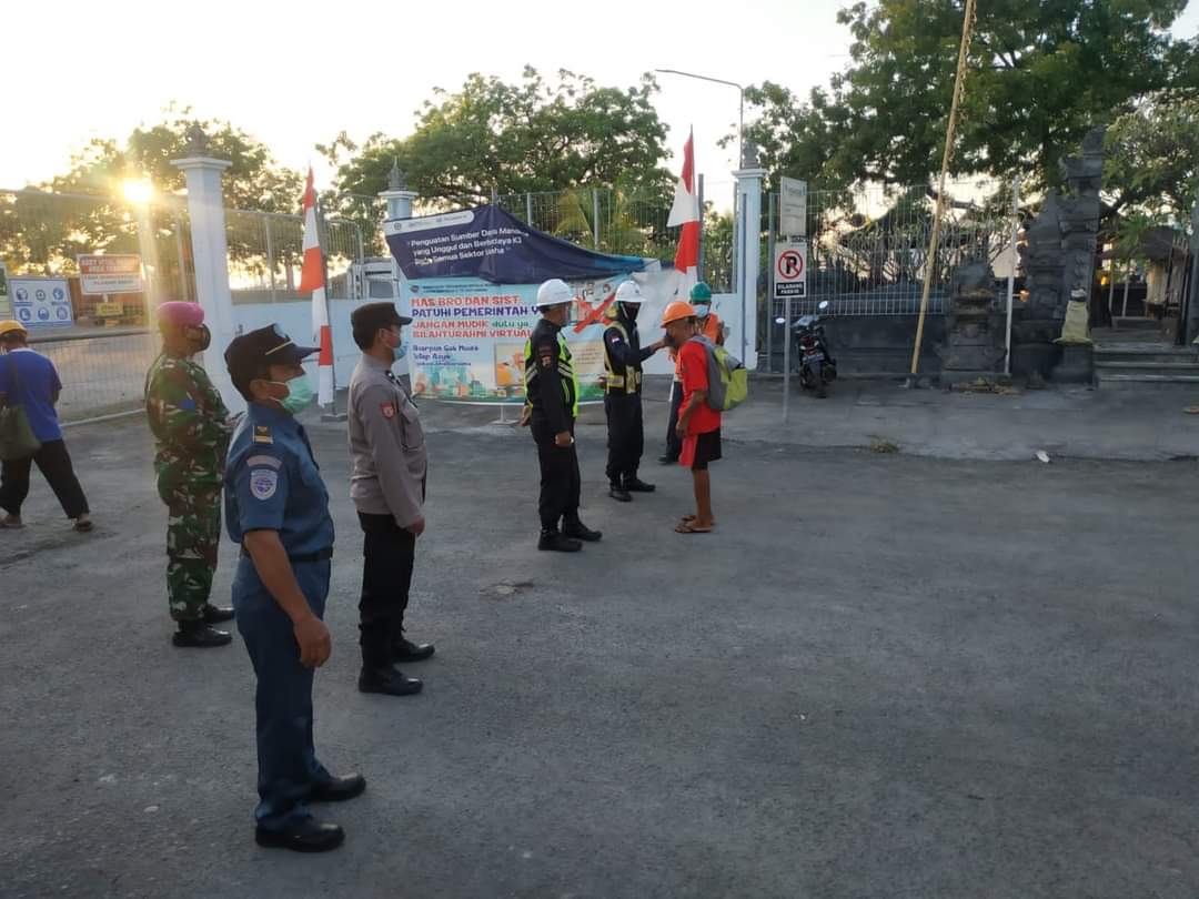 Bali,maspolin.id- Bertempat di Posko Sekat PPKM Darurat Celukan Bawang Bawang dilaksanakan kegiatan pemeriksaan suhu tubuh dan pemberian masker kepada para buruh yang akan melaksanakan kegiatan bongkar muat di area pelabuhan. Selasa (13/7/2021) Wita