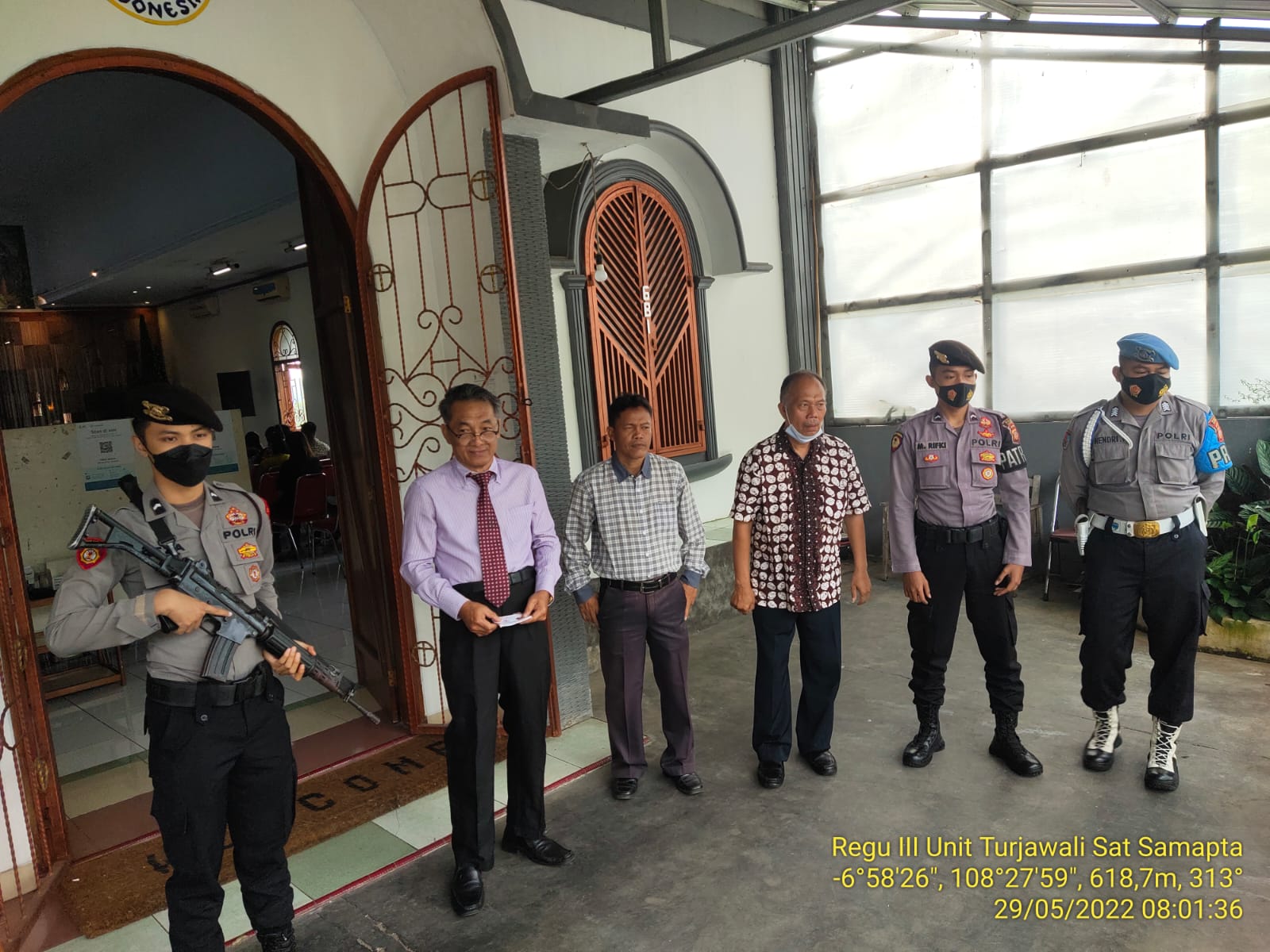 Polres Kuningan – Maspolin id|| Sejumlah Personil Kepolisian Polres Kuningan Polda Jabar, hari ini serentak melakukan pengamanan di Gereja-gereja yang ada di wilayah hukum Polres Kuningan, Minggu (29/05/2022) sekira pukul 08:30 Wib.