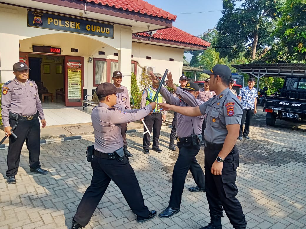 Kota Serang (Banten),Maspolin.id – Kepolisian Sektor Curug Polres Serang Kota, semua anggota setelah selesai melaksanakan apel pagi, dilanjutkan dengan kegiatan pemeriksaan kelengkapan surat – surat, kemudian diisi dengan latihan beladiri tongkat Polri yang bertempat di halaman Polsek Curug, Rabu, (16/10/2019).
