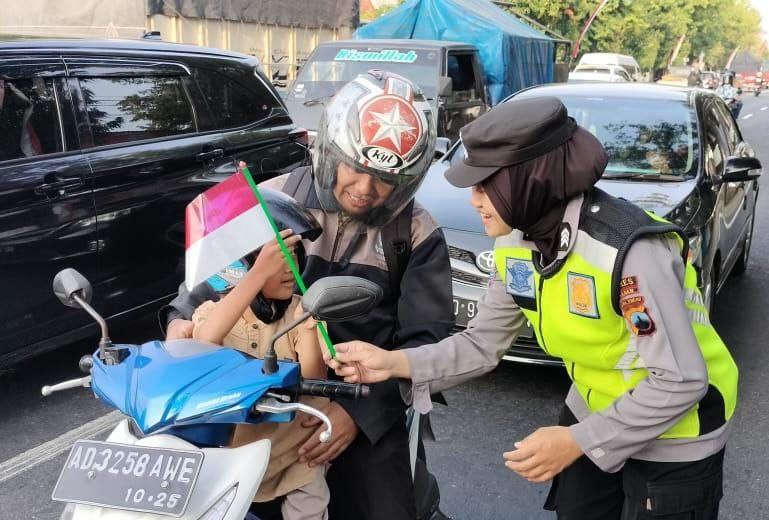 Kaur Bin Ops Sat Lantas Iptu Irwan Marvianto menyebut, bahwa pemberian bendera merah putih kecil ini sebagai apresiasi warga tertib, serta sebagai pengingat bahwa sebentar lagi, seluruh masyarakat akan segera memperingati Hari Ulang (HUT) Kemerdekaan Republik Indonesia Ke 79 tahun 2024.