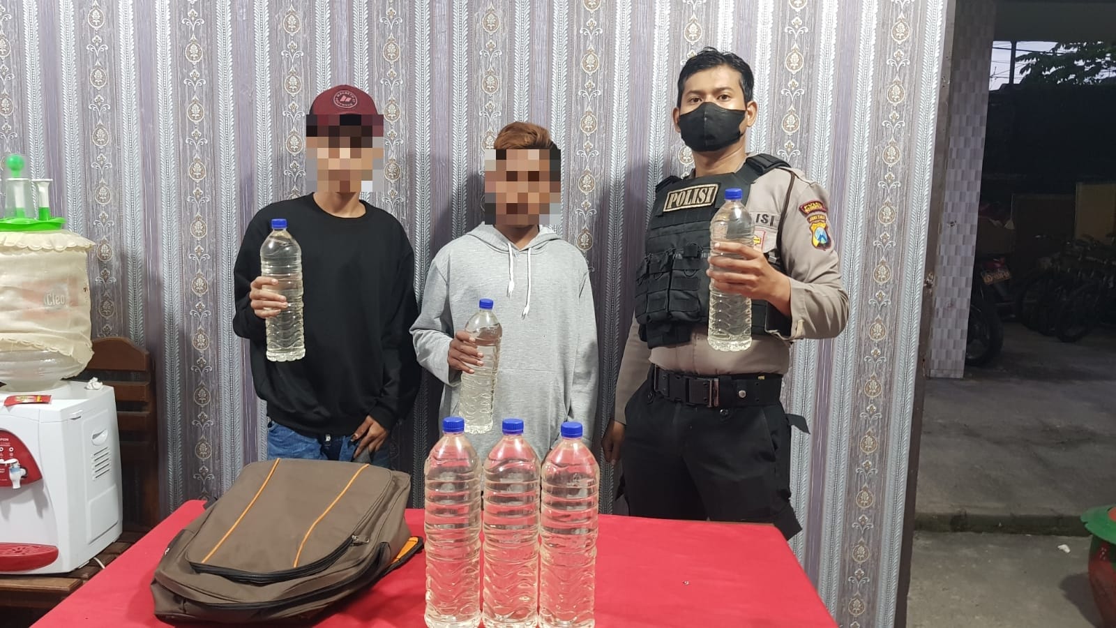Atas informasi dari masyarakat, anggota Sat Samapta Polresta Mojokerto lantas memburu minuman keras jenis Ciu Bekonang yang dijual dan diedarkan di Kota Mojokerto lewat media sosial.
