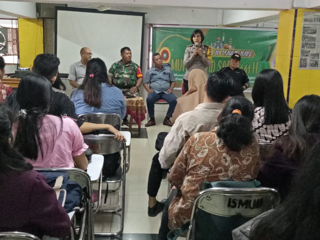 Bhabinkamtibmas Bripka Tani Erinawaty S,SH,MH menyampaikan narkoba dapat membunuh generasi harapan bangsa yang gemilang, narkoba dapat merusak diri sendiri, keluarga, masyarakat ataupun bangsa dan negara. Oleh karena itu marilah kita bergandengan tangan untuk memberantas penggunaan dan peredaran narkoba. Kepada adik-adik mahasiswa agar bekerjasama dgn aparatur penegakkan hukum dalam memberantas Narkoba dengan cara memberikan informasi kepada penegak hukum jika mengetahui adanya penggunaan ataupun peredaran narkoba. Sehingga informasi tersebut bisa menjadi bahan evaluasi untuk melaksanakan tindakan hukum berikutnya oleh penegak hukum.
