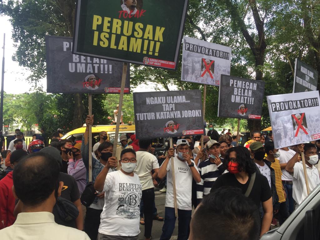 “Dalam aksinya, massa dari GPP-NKRI tiba di kantor DPRD Sumut menggunakan satu unit mobil Komando, 12 unit mobil angkot dan sepeda motor, pengeras suara serta membawa spanduk yang bertuliskan tuntutan, Jelas Waka Polrestabes Medan